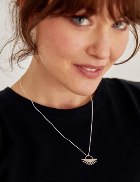 Etched steel or brass pendant on a sterling silver or gold plated silver chain.