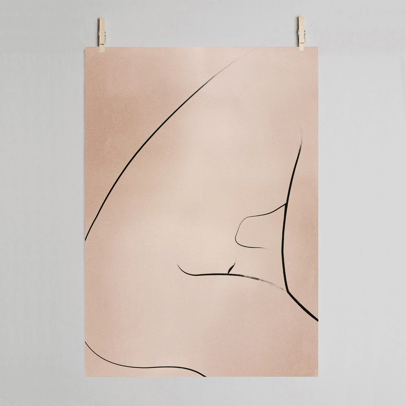Textured blush nude tones and black ink lines.