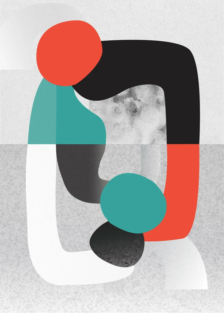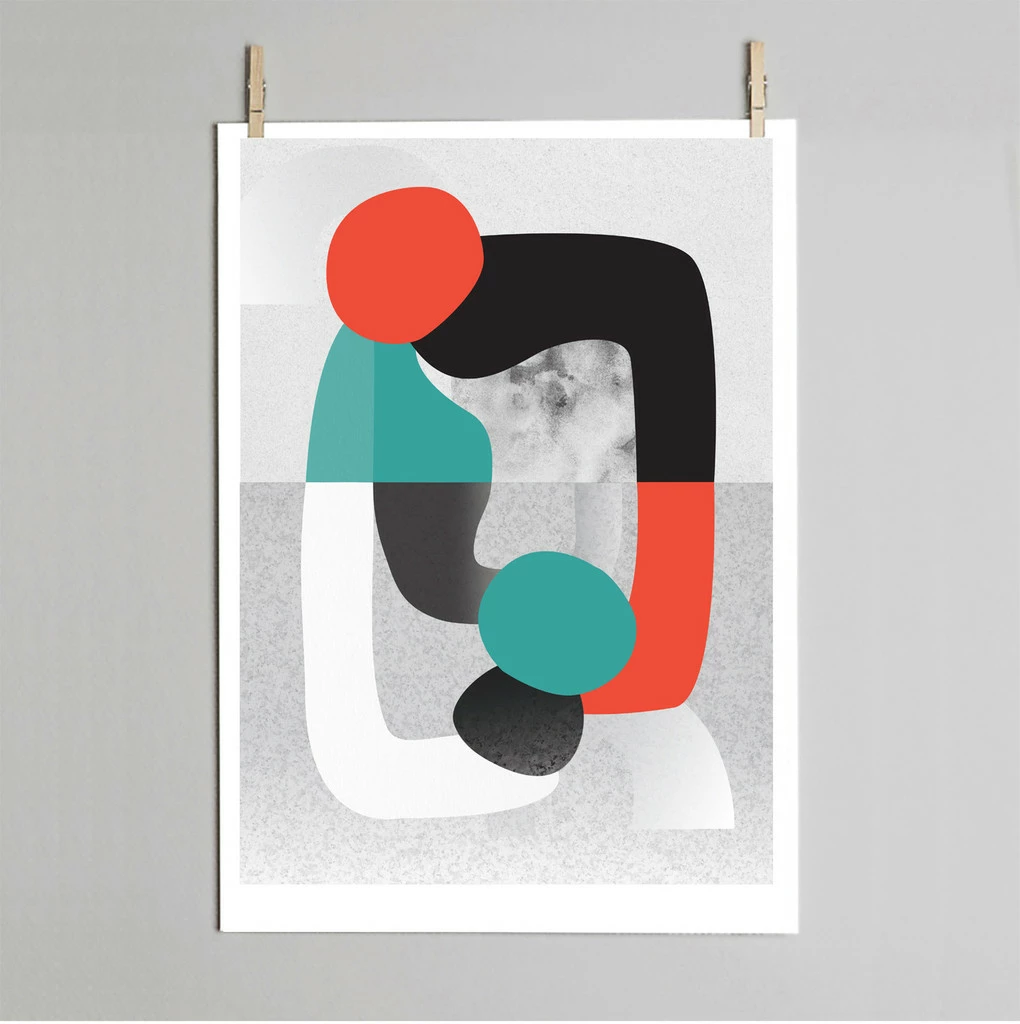 Abstract Embrace II composition print. Giclée print on archival quality 315 gsm soft cotton art paper. Fits standard A3 and 30 x 40cm frames. Designed and printed by Dowse in Brighton UK. Embossed & signed by Dowse. Delivered in a protective poster tube.