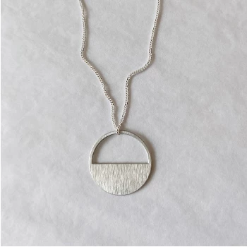 Etched steel or brass pendant on a sterling silver or gold plated silver chain.