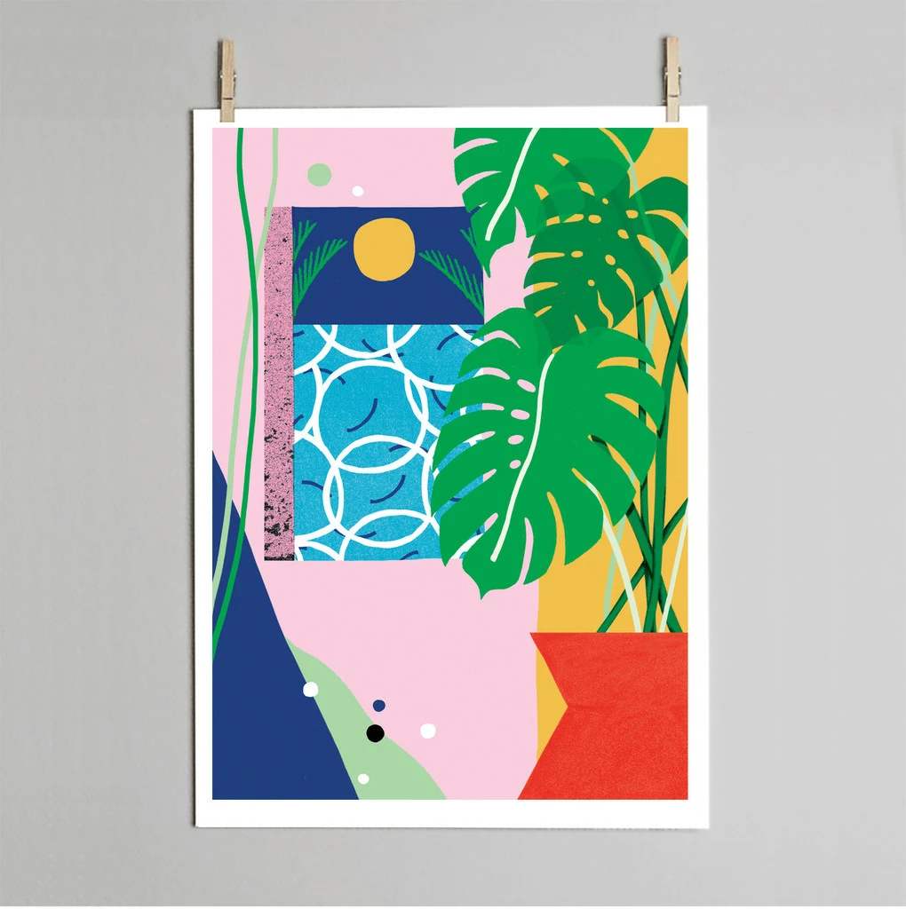 Pool print. Designed exclusively for Dowse by Lucy Sherston. Giclée print on archival quality 315 gsm soft cotton art paper. Fits standard A3 and 30 x 40cm frames. Designed and printed by Dowse in Brighton UK. Embossed & signed by Lucy Sherston. Delivered in a protective poster tube.