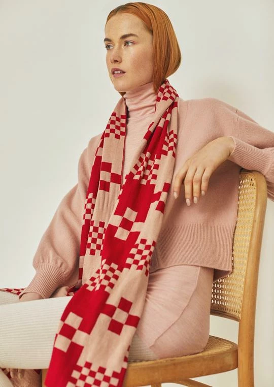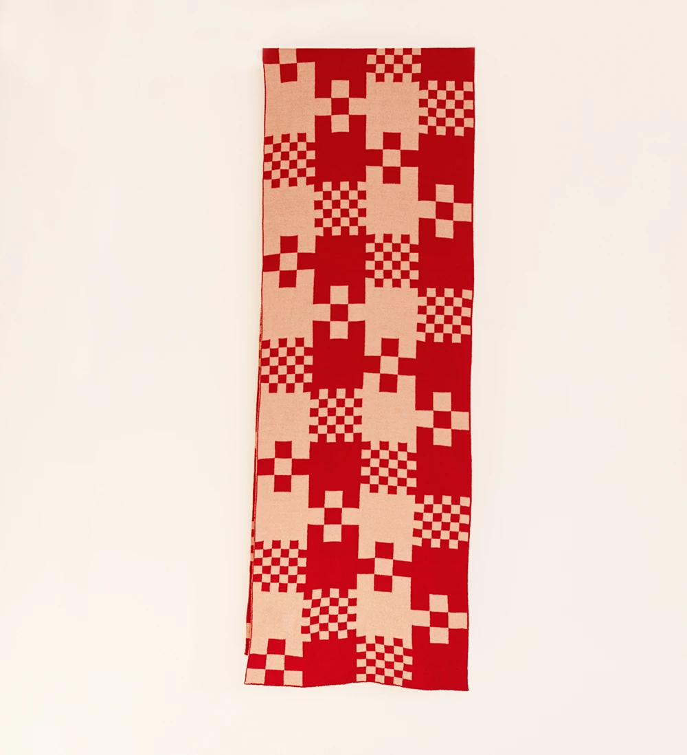 Bold geometric checked design two tone scarf.