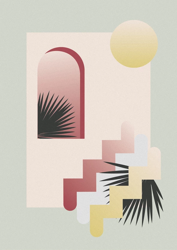 Sarasota – Arches, steps, sun Art Print. Inspired by the art deco architecture & atmosphere of Sarasota in Florida.