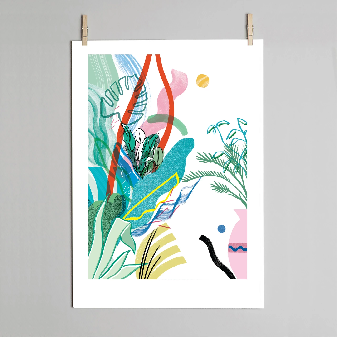 Botanical print. Designed exclusively for Dowse by Lucy Sherston. Designed and printed by Dowse in Brighton UK. Embossed & signed by Lucy Sherston. Delivered in a protective poster tube.