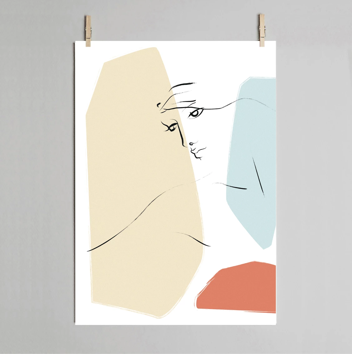 Sun Shade, figurative line drawing fine art print by Dowse. A3 giclée print on archival quality fine art paper. Fits standard frames. Sold unframed.