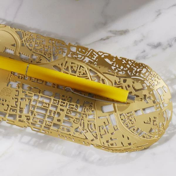 Berlin as a daydream. This pen tray will remind you of a stroll under the linden trees. Dimensions: L 20 cm x W 8 x H 1 cm Material: Matte Brass Made in Italy.