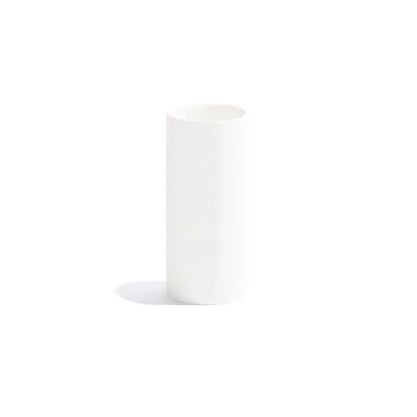 The MILK collection is a group of plain, ultra matte white cylinders and disks that can be combined to make a striking centrepiece for your dining or coffee table. The VASE: A vase or storage pot for utensils. Made from biscuit porcelain: an unglazed, white bone china with a matte appearance and sublime chalky texture. Biscuit porcelain was widely used in European and Chinese pottery for sculptural and decorative objects, most notably at Sèvres in the late 1700s. We made this vase to be dishwasher safe: It is baked twice at around 1400 °C which makes the material extremely dense, so nothing can attack the surface. Coffee, tea and wine do not stain, making this rare and refined texture available for daily use. Acids like vinegar help to clean the surface when necessary. Ideal around the kitchen, or for bits and pieces in the bathroom. Oven, dishwasher and microwave safe. Dimensions: Diameter 7 cm Height 13 cm Material: Biscuit porcelain Made in China.