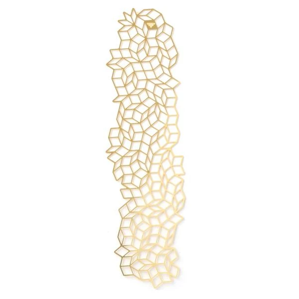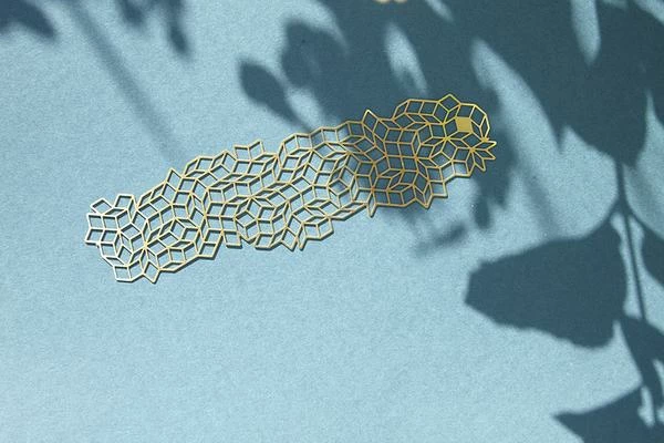 No more dog-eared pages! This solid brass bookmark offers an aesthetic way to mark your spot in a book. The bookmark is inspired by the penrose tiling pattern identified by Sir Roger Penrose in the 1970s. Just like looking into the clouds, you can always see new shapes and forms arising out of the combinations of the different rhombii. Dimensions: L 15.5 cm x W 4 cm Material: Shiny Brass Made in Italy.