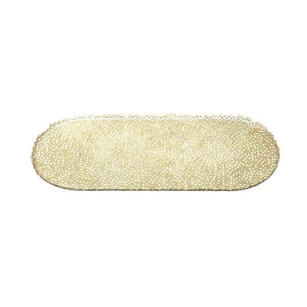 A mesmerizing pattern hand-drawn and machine etched to compliment your decorative arrangements. Usable as a serving tray for a cosy morning coffee in bed, a centrepiece on a dining table or to take in or out your daily necessities. Dimensions: L 35 cm x W 15 cm Material: Soft-brushed Brass Made in Italy.