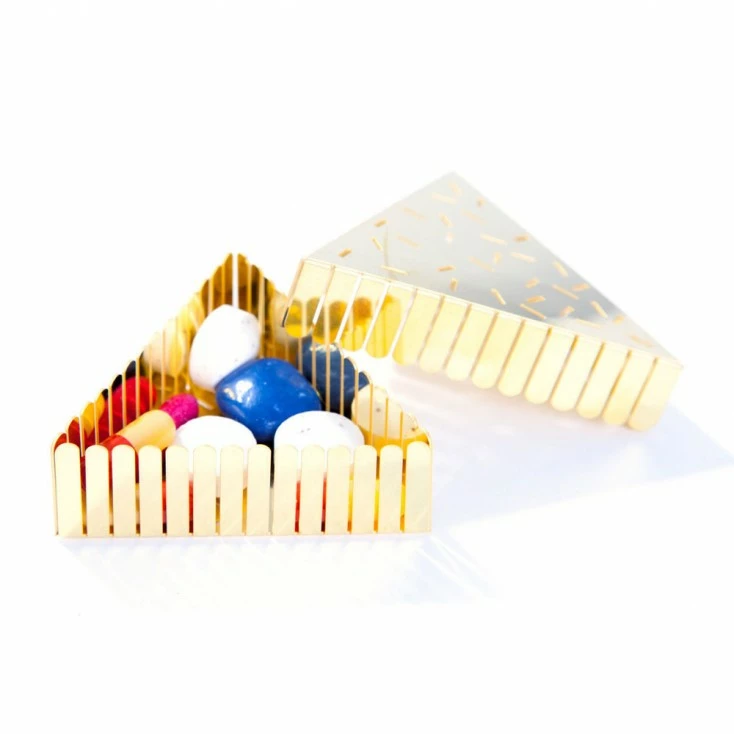 Keep your valuables safe in Fundamental Berlin’s delightful, small triangular PLAY box in solid brass.