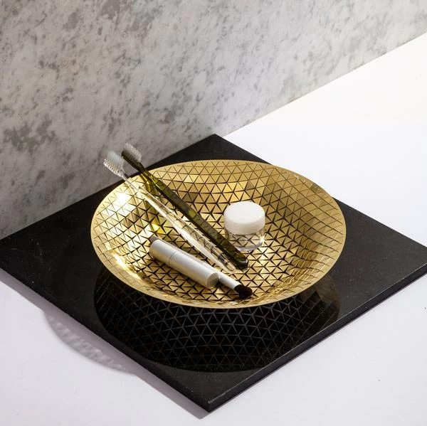 Make a bowl out of a disk. PUSH is delivered as a flat metal plate that you can give a unique shape with your fingers. By gently applying pressure, you can create a little vessel to store valuables like chains and rings, or bits and pieces like keys and make-up. PUSH is a combination of mathematical geometries and the best craftsmanship, available in four different metals. Dimensions: ø: 24 cm Material: Shiny brass, copper, stainless steel or blue steel Made in Italy.