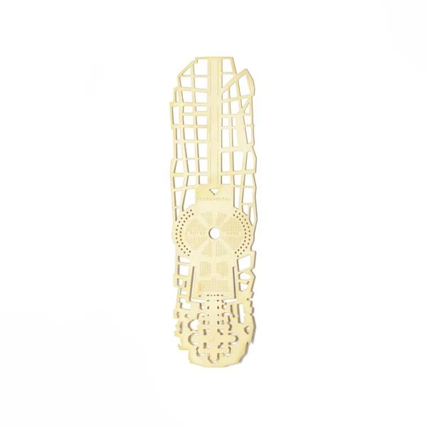 The famous 1736 Nolli map of Rome shows the city‘s churches and public interiors as outdoor space, giving a rich and intuitive account of wandering through the eternal city. This pattern inspired our bookmark, based around the Vatican. Dimensions L 15 cm x W 4 cm Material: Matte Brass Made in Italy.