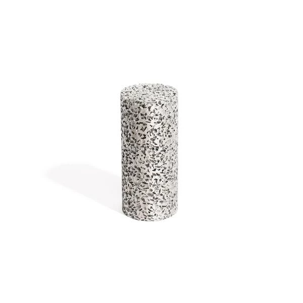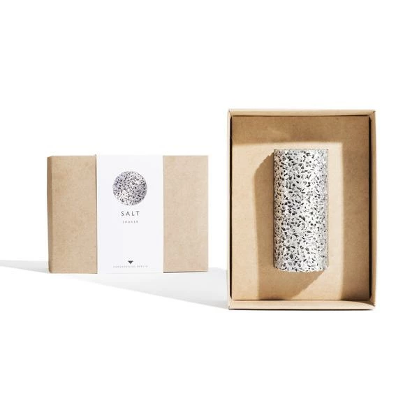 Something between a totem and a monolith: SALT stands on the dining table. Seamless and porous, it calls to mind a perfect piece of moon rock. Add a touch of mystery and primordial, galactic drama to the dining table: Pick up the satisfyingly heavy salt shaker and shake it over your meal, watch as the fine grain salt seems to just emit from the top surface, finding its own way out of the labyrinthine structure. How did and why did we make this strange piece of tableware? We had been shown various techniques of casting aluminium in Russia. By introducing rock salt into the casting process for aluminium, you have an aggregate that resists the 660°c melting point of aluminium ore, and is totally food safe. Better yet, while salt is impervious to heat, it is helpless against water. The aggregate can be washed out easily, leaving the mysterious, moon-rock like voids in the volume, through which the finer grain of conventional table salt can find it’s way to your avocado. Dimensions: 4,5 x 4,5 x 10 cm Material: Cast Porous Aluminium Made in Russia.