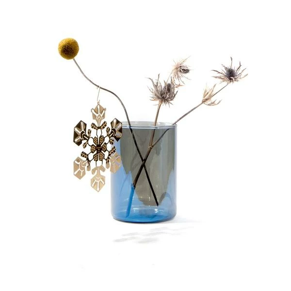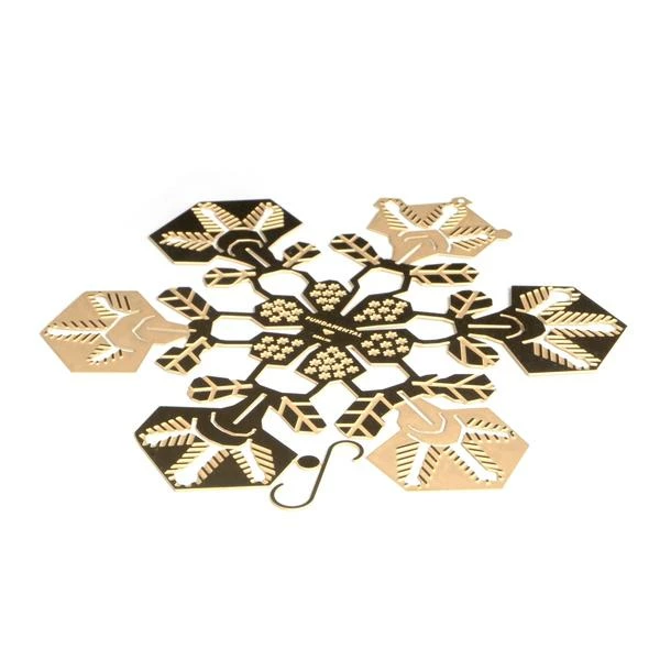 Inspired by the first attempts to photograph individual snowflakes under a microscope, these ornaments celebrate both the crystalline 3 axis fractal symmetries of show crystals, and the charming imperfections they have as they start to melt in the microscope. Brass tree or window ornament. Dimensions: Diameter 15 cm Thickness 1 mm Material: Solid brass Designed in Berlin, made in Italy.