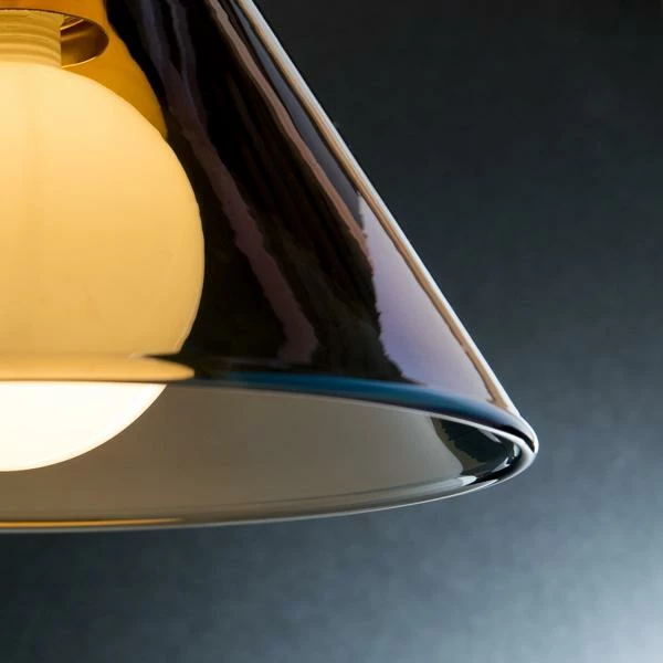 Make a discreet but forceful geometric statement in your home with this lamp. Shaped to provide shade to a spot bulb, the lamp also looks great with a globe bulb. It is perfect over a dining table or side table, where a spotlight can make a warm, discreet pool of light to highlight a feature, or as a ceiling light in the middle of a room. The lamp comes with a 2 m long white textile cable and premium ceiling fitting. It has a diameter of 20 cm, the measurement from the base to the bottom of the neck is 18 cm and the neck is 13 cm long. Total height: 31 cm. Bulb to be ordered separately: We recommend the Paulmann Opal Globe 80 mm, to create that geometric silhouette and provide ambient light, click here for a link to the product on Amazon.de For a nice pool of warm discreet focused light, we recommend the Osram Classic R63 spot, click here for a link to the product on Amazon.de. Dimensions: Diameter 21 cm Height 30 cm Cable length 2 m Material: Sandblasted glass Made in Czech Republic.