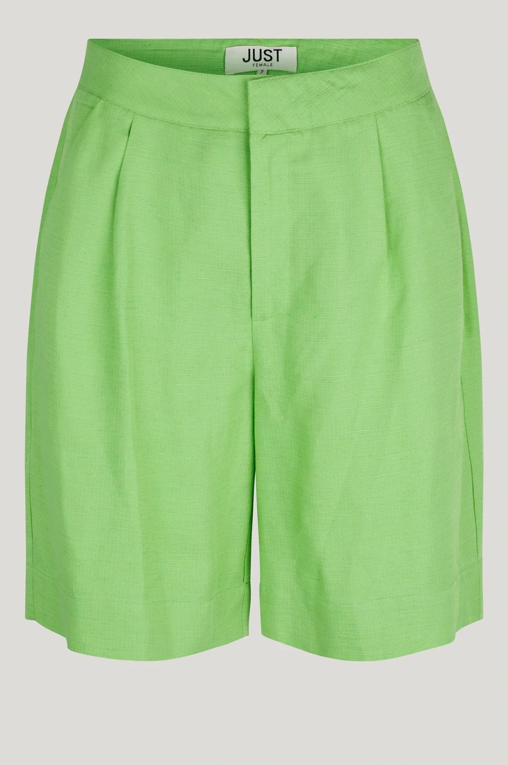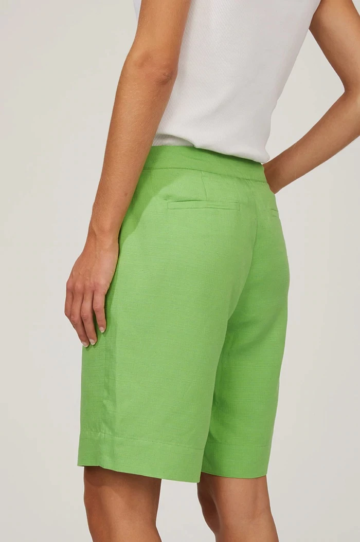 The Just Female Caro shorts in absinthe green are a lightweight linen blend, bermuda length short in a striking green colour. The shorts have slant pockets and pleat detailing at the front for a super flattering fit. They look great worn casually during the day or dressed up with heels in the evening, these shorts will definitely get you noticed this summer. For a fully coordinated look style with the Caro blazer.
