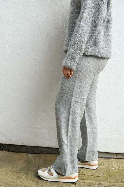 Soft knit trousers made of a nice wool blend. The trousers have elastic at the waist and wide legs that go to the ankles. There is rib edge at the front of both legs. Trousers in soft wool blendWide trouser legsElastic at the waistAnkle length 50% Wool 30% Polyamide 18% Nylon 2% Elastane Dry clean only