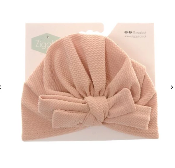 Ziggle Oatmeal Bow Turban Hat No hair, who cares? Add the finishing touch to your little one’s outfit with this gorgeous soft fabric bow turban. Fits with lots of stretch from 1 year to 3 years Cool or hand wash. Do not tumble dry.