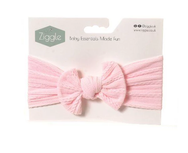 Ziggle Top Bow Turban Headband Heavenly Pink No hair, who cares? Add the finishing touch to your little one’s outfit with this gorgeous soft fabric headband. In a delicately designed cable and line pattern for a subtle, stylish look with a fixed bow, so no need to tie each time.